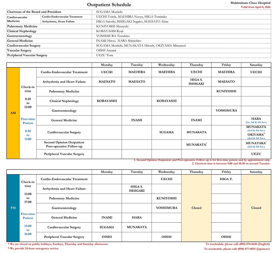 Click here to Download outpatient schedule.